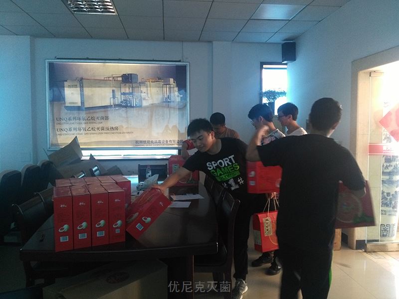 2018年6月15日下午,在中國傳統節日端午節來臨之際,杭州優尼克消毒設備有限公司延續了以往的貼心傳統,為全體員工精心準備了節日禮品。